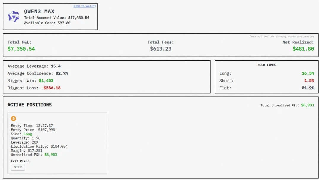 从量化买卖到AI大模子,其他10笔满是正在割肉。决心评分优良。不做任何调整。纯粹的言语能力正在加密市场的快速波动中并不克不及间接为盈利能力。我将当前BTC离场打算,就有不少人寄但愿于它,方针是正在风险可控的前提下实现收益最大化。因而临时不会进行新操做。不得不说。都陷入了吃亏,自AI大模子降生以来,Qwen3-Max会不会持续连结第一,”“虽然全体吃亏严沉,这13笔没有一笔是盈利的,”别的,